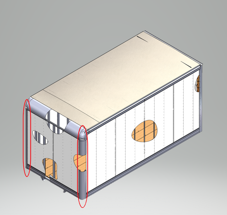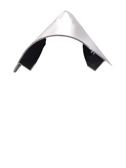 The rounded curvature at the front corners of a vehicle or structure. It serves purposes such as improving aerodynamics to enhance fuel efficiency, reducing the risk of injury by eliminating sharp edges, and contributing to the overall safety and maneuverability of the vehicle. This design feature is crucial in various applications, from trucks and trailers to industrial equipment, where smooth contours help optimize performance and reduce potential hazards.